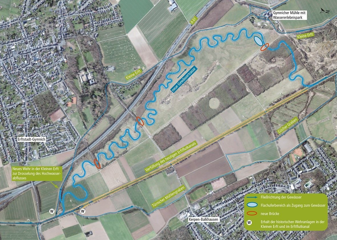Mit der Neugestaltung will der Erftverband die Gewässerökologie für Flora und Fauna verbessern. Es soll ein naturnaher Flusslauf entstehen, der auch den Hochwasserschutz verbessert.