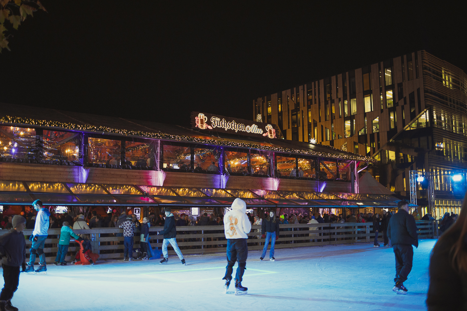 Als i-Tüpfelchen bieten zwei wetterfeste Pop-up-Restaurants Raum zum Aufwärmen: Das „Berg Stübli“ (80 Sitzplätze) und der „Wilder Hirsch“ (30 Sitzplätze) bieten jeweils Speisen aus Österreich und Bayern an, „der direkte Blick auf dem Rhein ist inklusive“, so Paul.