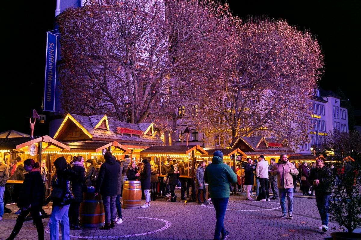 Die Weihnachtspromenade findet ihr zwischen Burgplatz und Alter Hafen entlang des Rheinufers. Also ungefähr dort, wo auch die Büchermeile stattfindet.