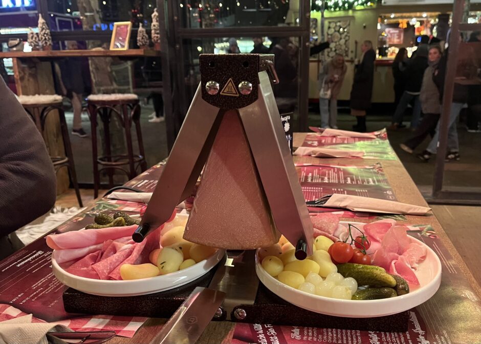 Das Highlight auf der Karte des „Berg Stübli“: Traditionelles Käse-Raclette zum selbst Scharben – mit mildem Höhlenkäse und Beilagen. Kostenpunkt: 26,50 Euro für zwei Personen. Foto: Tonight