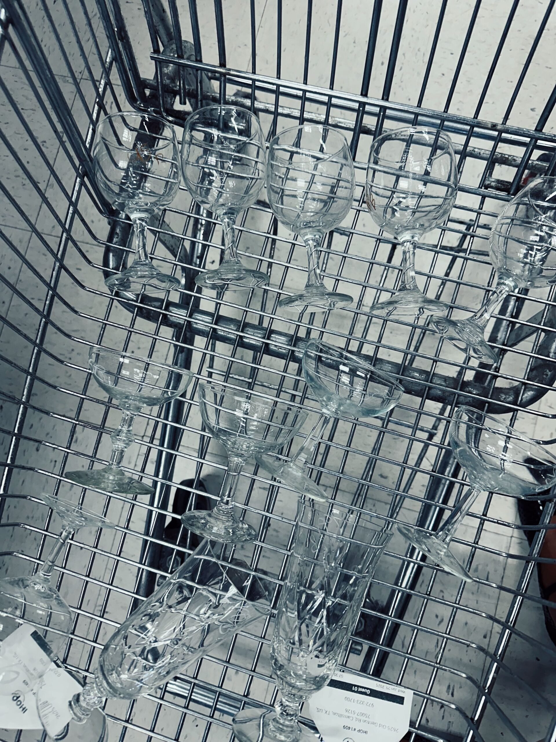Ich fand Poco-Grande-Gläser, Martini-Gläser, Grappa-Gläser, Coupe-Gläser, Café au lait-Gläser, Milchshake-Gläser und mehr, alle zu Preisen zwischen 0,95 und 2,99 Dollar (0,81 und 2,56 Euro). Außerdem habe ich einen Kuchenständer, Servierplatten und Schüsseln erstanden — alle unter zehn Dollar (8,6 Euro). Insgesamt habe ich 30 Teile für nur 100 Dollar (86 Euro) mitgenommen.