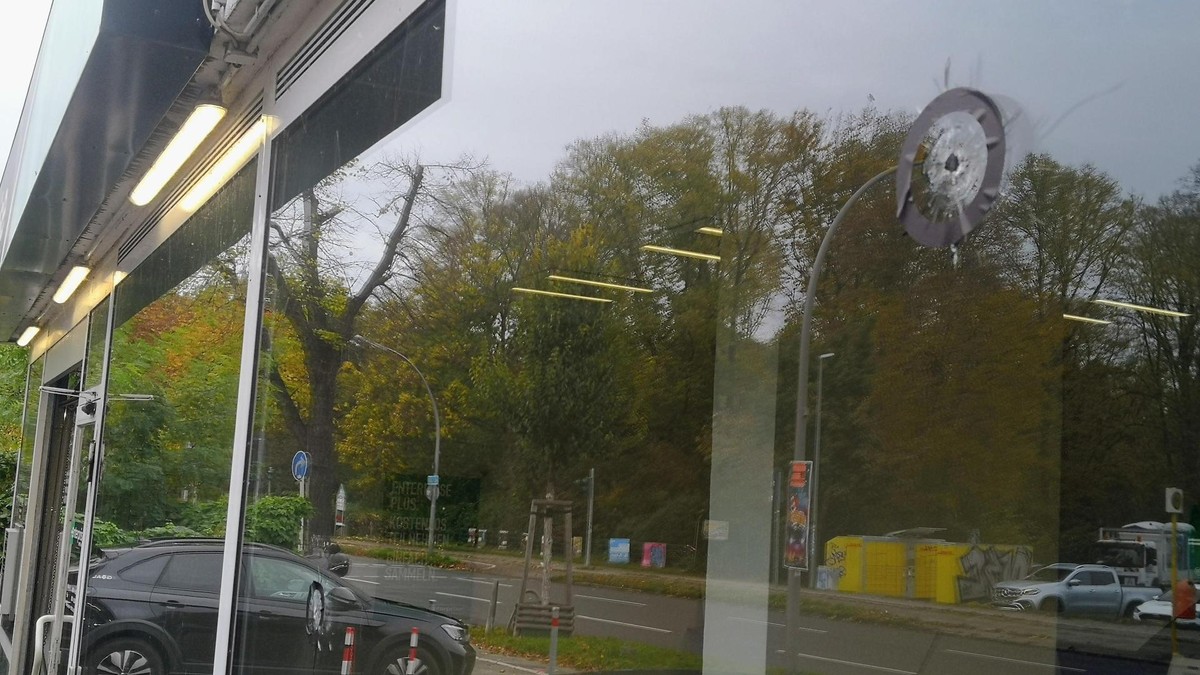 Doch offenbar hatte auch der lebensgefährlich verletzte Mann vorher Schüsse auf die Unbekannten abgegeben. Denn während die geparkten Fahrzeuge auf dem Supermarkt-Parkplatz aus einer Richtung getroffen wurden, befinden sich die getroffenen Schaufensterscheiben, die einer Autovermietung und eines Sportstudios, in entgegengesetzter Richtung auf der gegenüberliegenden Straßenseite. Also dort, wo sich der getroffene 45-Jährige, nicht aufgehalten hatte. Und mittendrin das zerstörte BVG-Wartehäuschen an der Haltestelle Am Heidefriedhof. Am Tag danach liegen Berge von Glassplittern hinter den Sitzen, Werbeplakate aus der zerstörten Seitenscheibe des Häuschens liegen auf dem Boden.