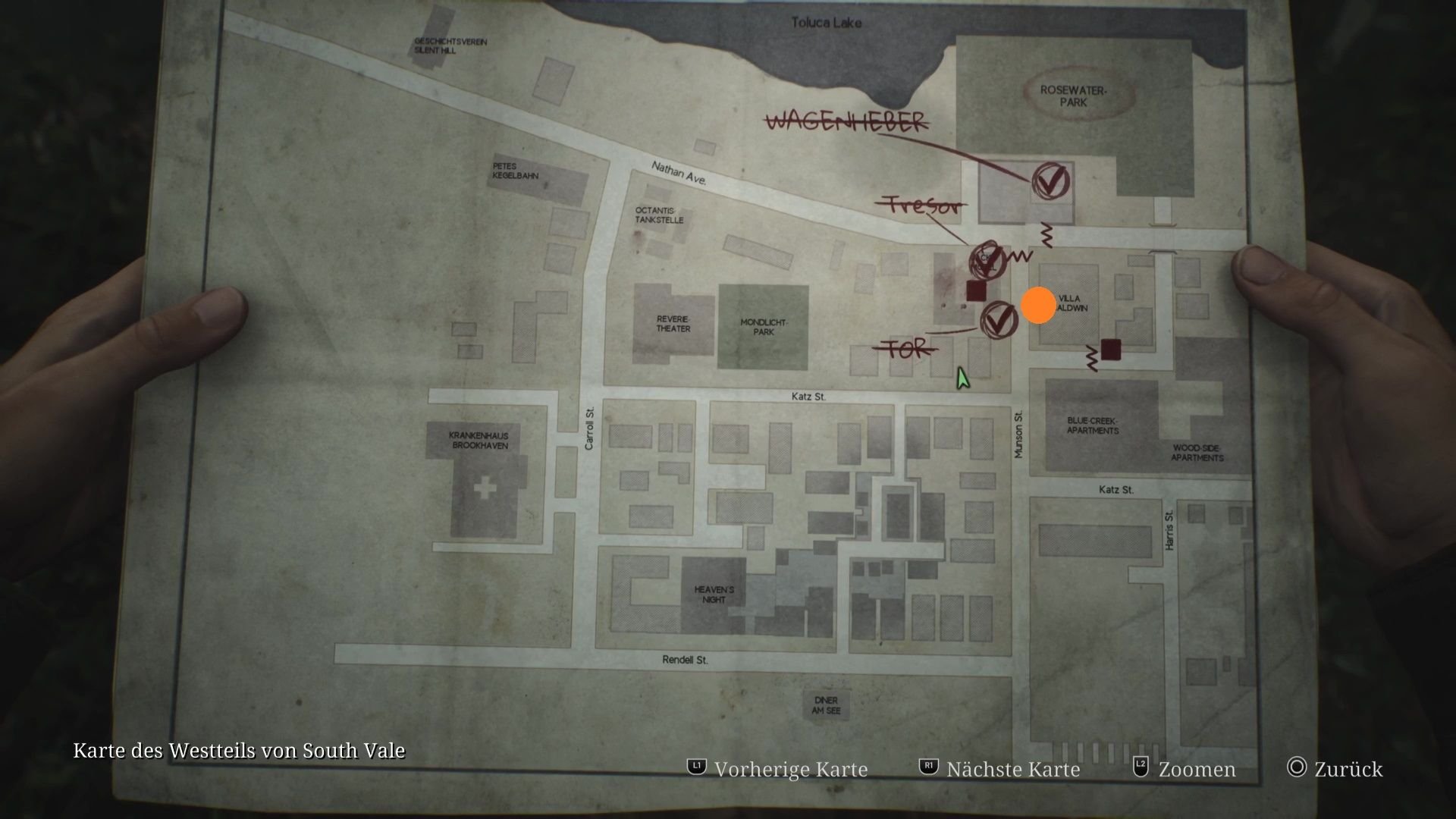 Zudem helfen wir euch dabei, den relevanten Speicherstand zu setzen, der sich dieses Mal an einer früheren Stelle befindet, nämlich in der nicht albtraumhaften Version des Lakeview Hotels. Geht wie folgt vor: