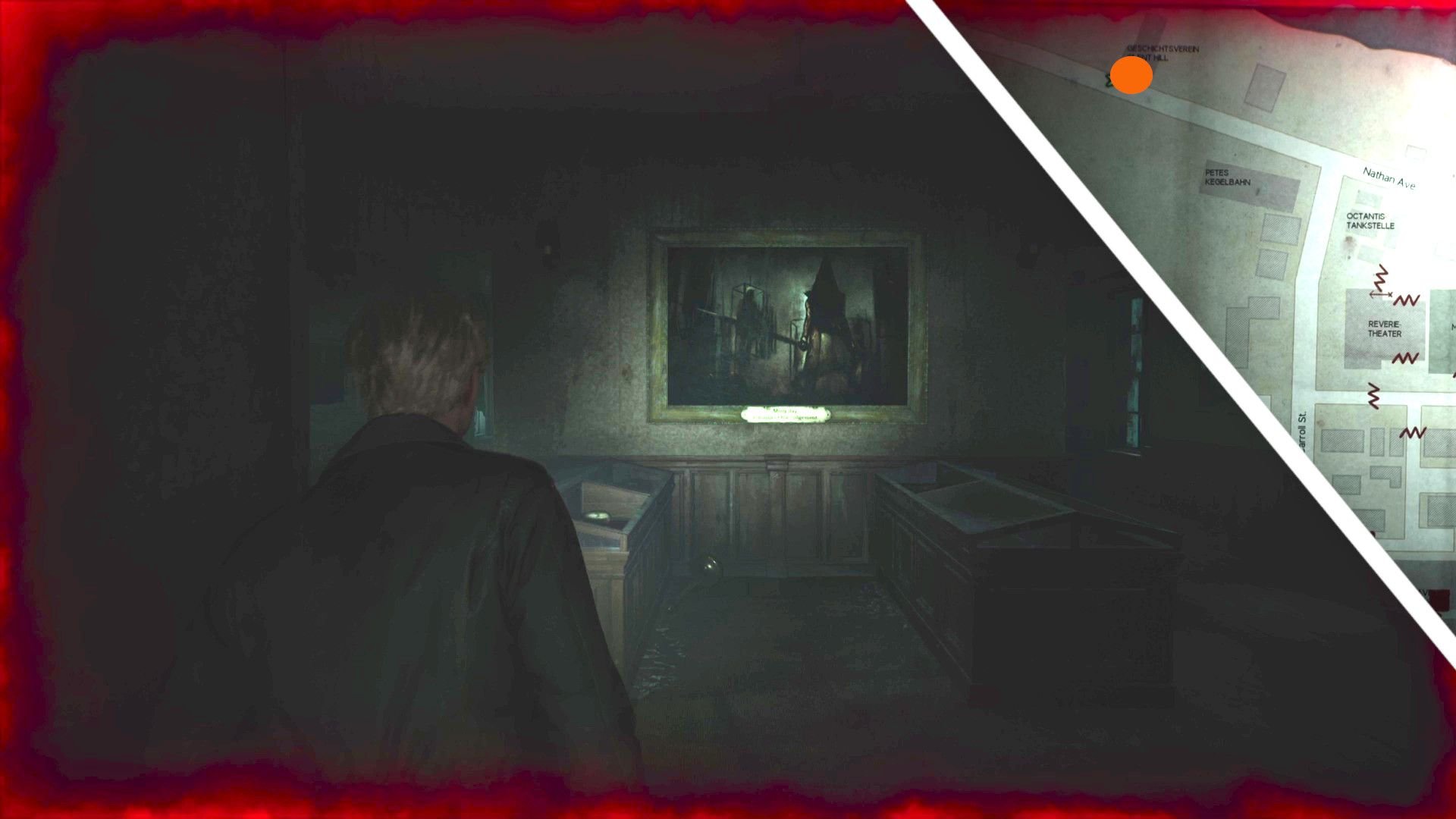 - 13. Für das Ende “Wiedergeburt”: Wenn ihr im Geschichtsverein seid und in den Raum mit dem Gemälde von Pyramid Head hineingeht, biegt gleich links ab und schaut zur linken Wand. In der Aussparung findet ihr den Obsidian-Kelch. Schnappt ihn euch.