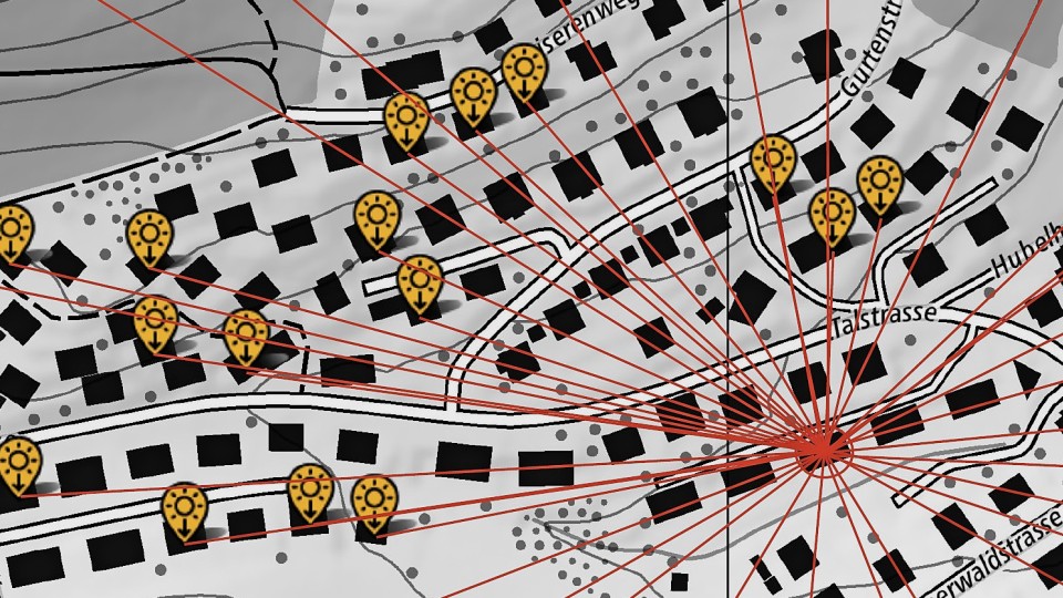 Die zentrale Herausforderung besteht darin, zwischen Korrelation und Kausalität zu unterscheiden. Oft ist unklar, wer eigentlich wen beeinflusst. Prägt die Nachbarschaft den Haushalt – oder ist es umgekehrt? Zudem suchen sich Menschen ihr Wohnumfeld meist gezielt aus und ziehen dorthin, wo bereits Gleichgesinnte mit ähnlichen Interessen wohnen. Für ein ideales Experiment müsste man Solaranlagen zufällig in bestimmten Nachbarschaften installieren und beobachten, wie sich das Energieverhalten der Umgebung verändert. Da das praktisch nicht möglich ist, greifen wir auf Beobachtungsdaten und ein natürliches Experiment zurück: Manche Dächer eignen sich aufgrund ihrer Neigung oder Ausrichtung rein zufällig besser für Solaranlagen als andere. In Gegenden mit vielen geeigneten Dachflächen entstehen daher häufiger Anlagen. Diese gegebene Eignung der umgebenden Dächer beeinflusst das Energieverhalten einzelner Haushalte nicht direkt, ermöglicht uns aber, den Einfluss von Solaranlagen in der Nachbarschaft von anderen Faktoren zu trennen und den direkten Effekt zu isolieren.