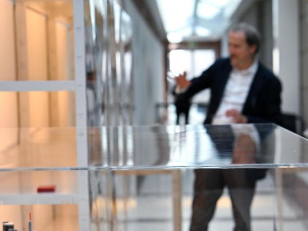Bauen können auch die Besucherinnen und Besucher der „großen Mitspiel-Ausstellung“, wie sie im Untertitel heißt. Unter anderem das Hochhaus der „Skyline“. Neben dem Modell steht ein Tisch, Elemente dafür liegen in Kisten aus. Sie seien nachmoduliert und nachproduziert worden, sagt Elser. Aus Kunststoff mit dem 3D-Drucker. Sie quietschen ein wenig, wenn man sie zusammensteckt.
