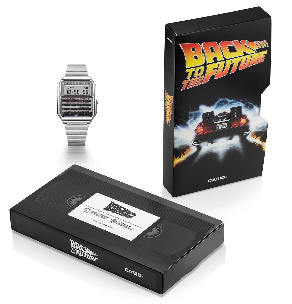 Casio greift tief in die Retro-Kiste: Die neue Sonderedition basiert auf dem klassischen CA-500-Design der 1980er-Jahre, also genau jener Uhr, die damals wie heute ein Symbol für futuristische Coolness war. Auf der Rückseite prangt eine Gravur des Fluxkompensators, jenes fiktiven Bauteils, das im Film die Zeitreisen ermöglicht – ein liebevolles Detail für Fans.