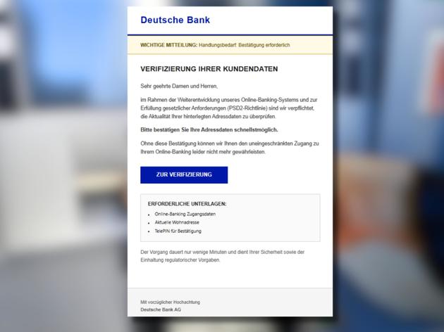 Deutsche Bank: Gefährliche Phishing-Mail fordert Kunden zur Datenprüfung auf