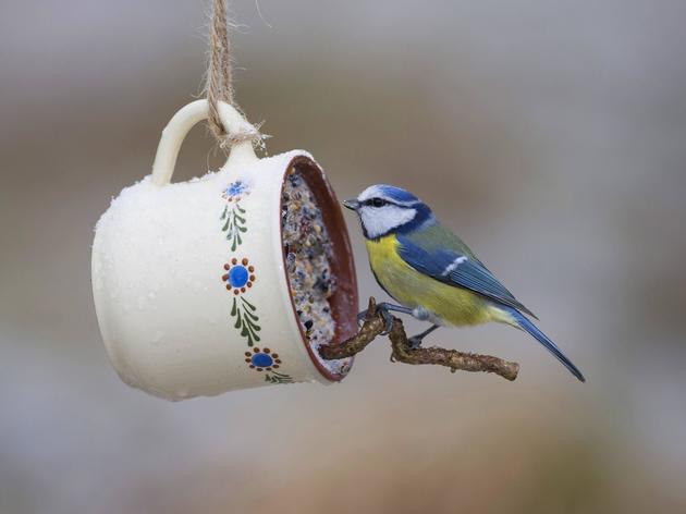 Sie wissen nicht, wohin mit Ihren alten Tassen? Dann hätten wir eine Lösung: Im Garten aufgehängt, werden sie im Winter zur wertvollen Hilfe für Vögel.