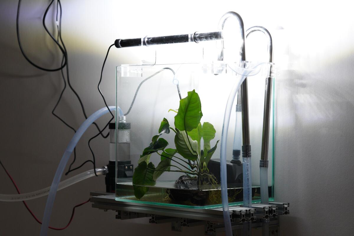 Der Computer betreibt zudem das Programm „CERN at home“, das weltweit Rechenleistung freiwillig teilnehmender Rechner bündelt. So entsteht ein Geflecht aus Wasser, Strom, Technik und Pflanzen – ein physikalischer, biologischer und digitaler Kreislauf. „Besucher werden durch das Hineingeben von Wasser oder Speichel symbolisch zu einem Bestandteil dieses Systems, das Koexistenz, Flow und Zusammenarbeit sichtbar machen soll“, so der Museumsleiter.