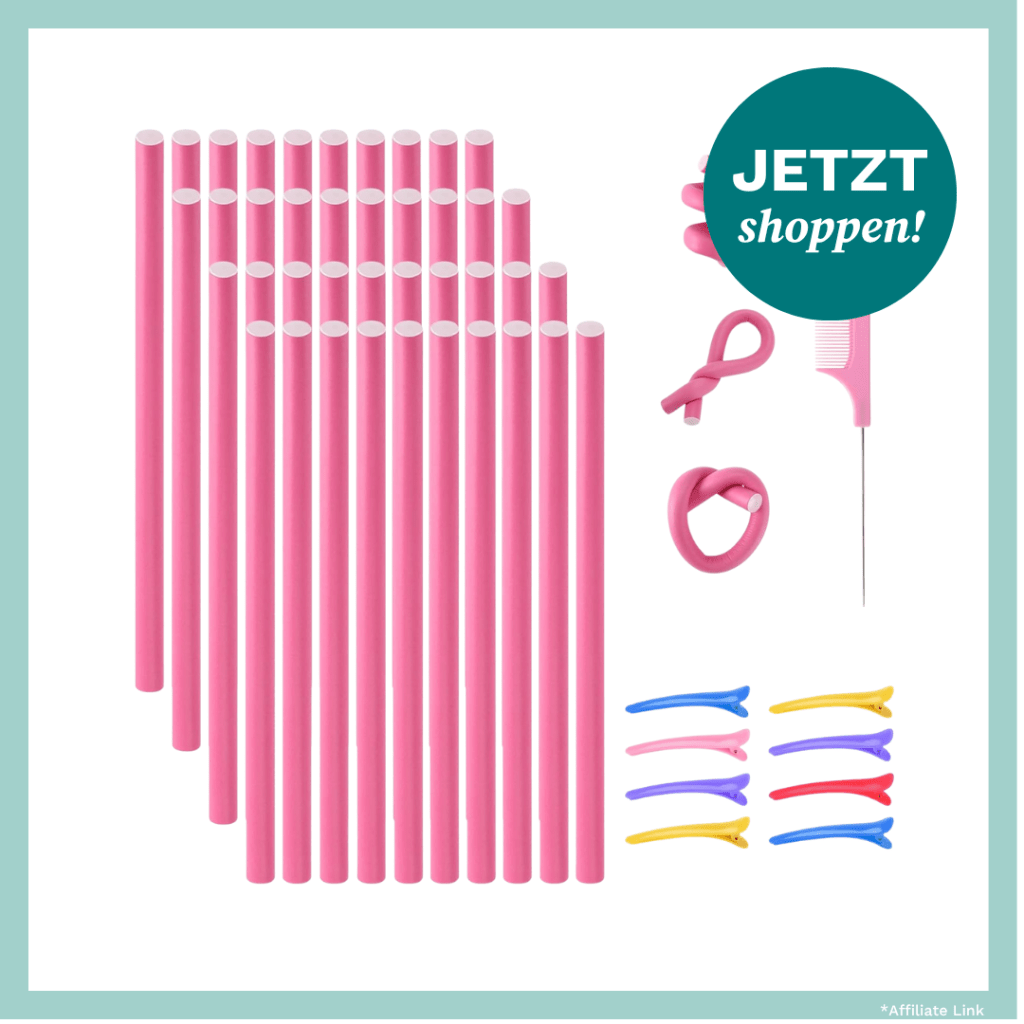 Wenn du dein Haar lieber schonend formen möchtest, sind Lockenwickler* perfekt. Sie kommen ganz ohne Hitze aus und zaubern trotzdem wunderbar weiche, voluminöse Wellen.