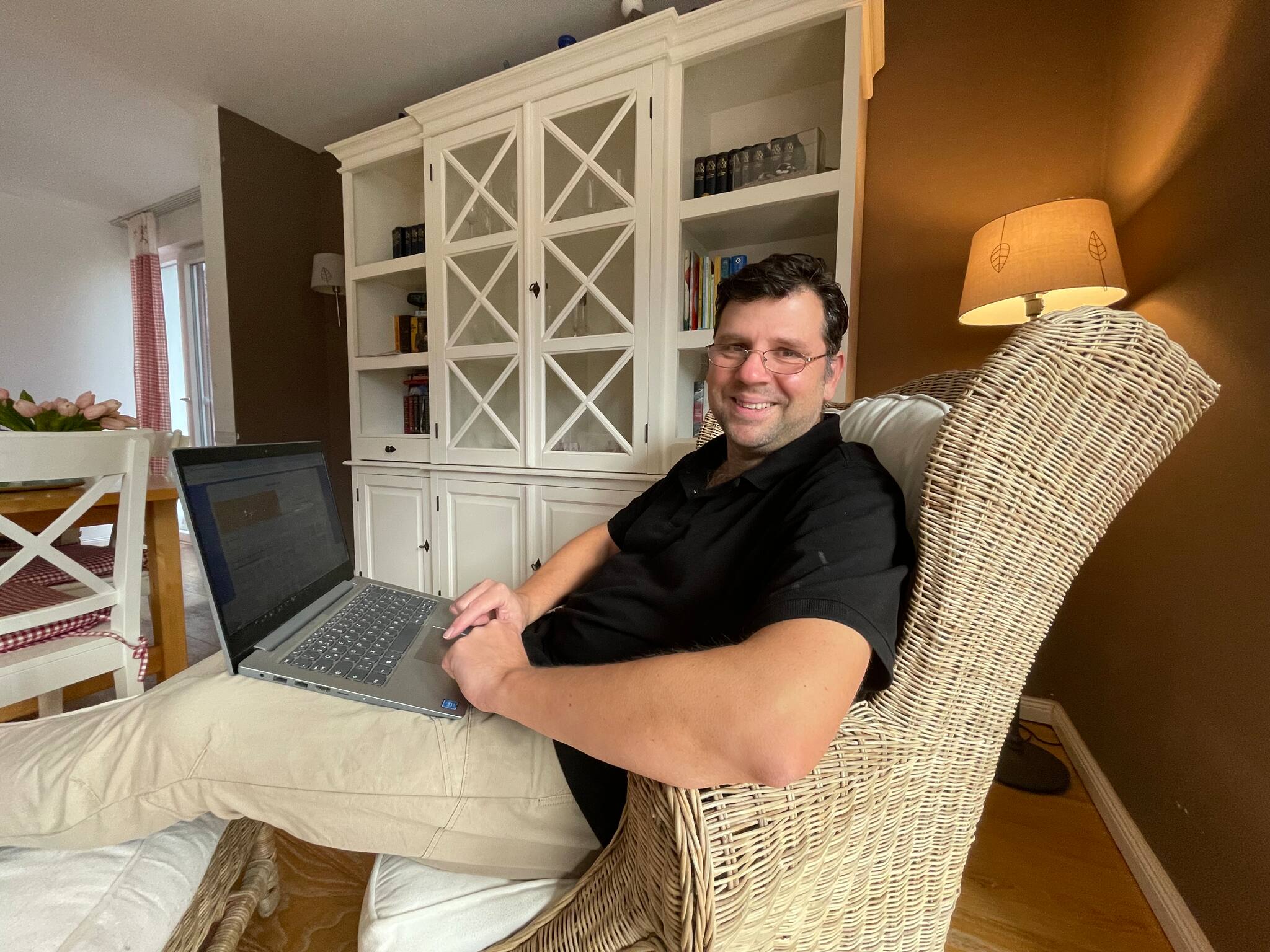 Ich bin 50 und sitze mit meinem Laptop auf der Couch. Claude ist das KI-Sprachmodell von Anthropic, also so etwas wie ChatGPT, nur von einer anderen Firma.