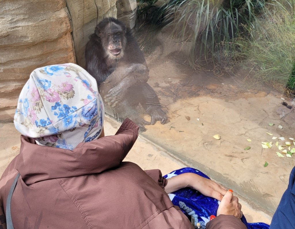 Am Affengehege dann die Überraschung: „Während die ganze Reisegruppe um Sabrinas Rollstuhl steht und den Tieren zuguckt, setzt sich ein Schimpanse ganz nah an die Scheibe und hat nur Augen für Sabrina, scheint ihr Kraft und gute Gedanken zu schicken. Die Magie dieses Momentes sorgt für Gänsehaut“, berichten die Wunscherfüller von diesem Moment.