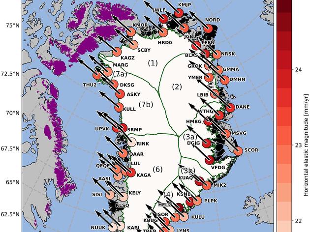 „Das Eis, das in den letzten Jahrzehnten geschmolzen ist, hat Grönland nach außen gedrückt und eine Hebung verursacht, sodass die Fläche in dieser Zeit tatsächlich größer geworden ist. Gleichzeitig sehen wir eine Bewegung in die entgegengesetzte Richtung, bei der Grönland aufsteigt und sich aufgrund prähistorischer Veränderungen der Eismassen im Zusammenhang mit der letzten Eiszeit und ihrem Ende zusammenzieht“, erklärt Berg.